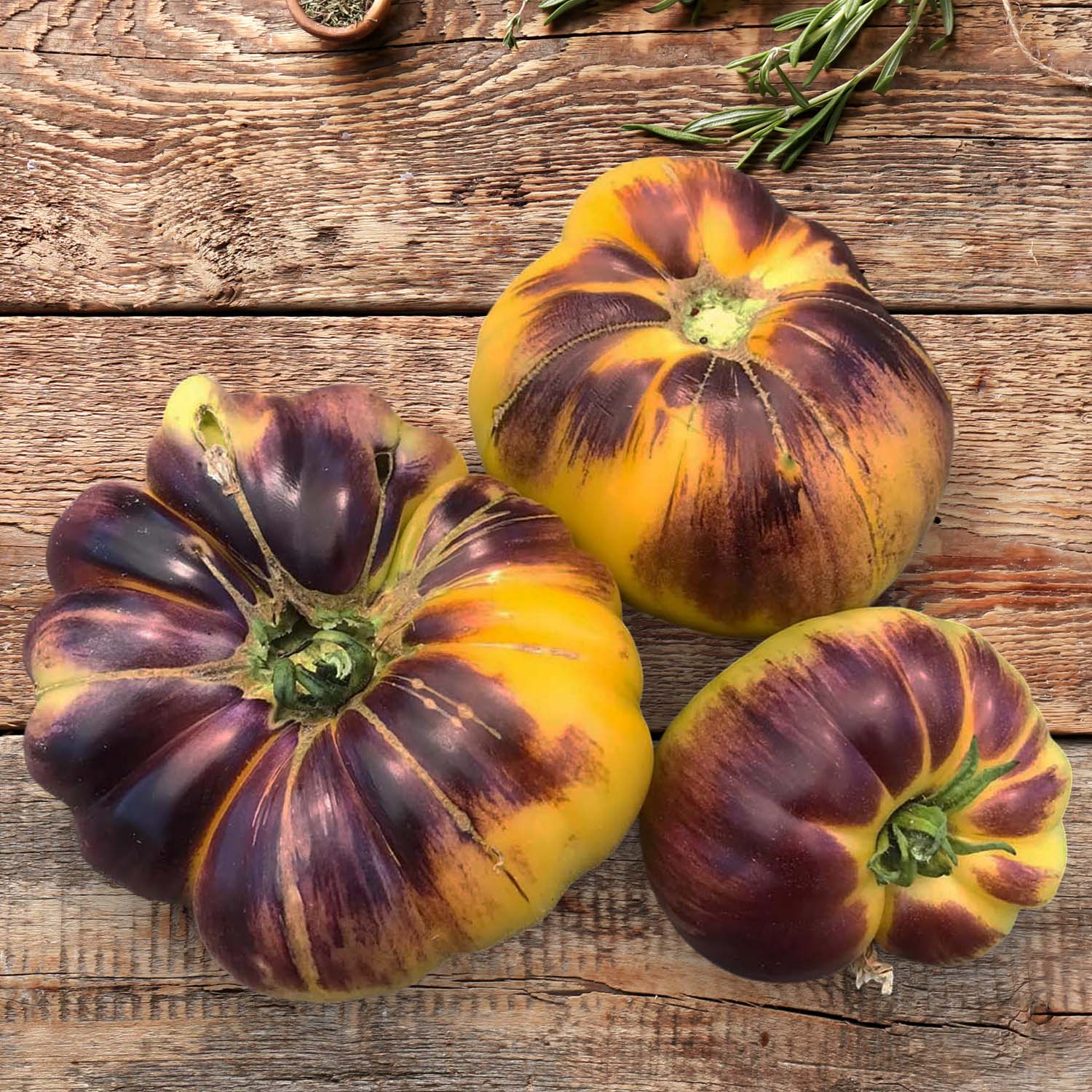 Let’s start with looks. The Sart Roloise isn’t your standard red rounder – it’s a golden, almost glowing beefsteak with inky blue shoulders and delicate striping that looks like it’s been painted on. Slice it open, and you’ll find a marbled interior that feels more like art than produce.